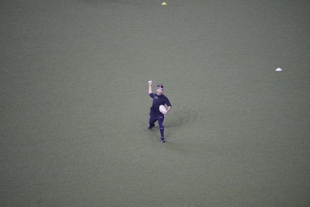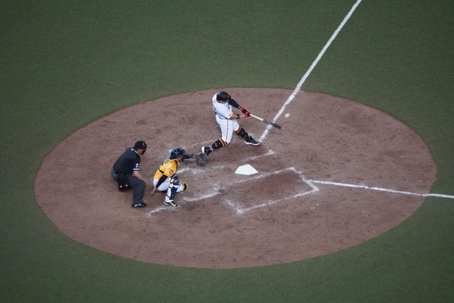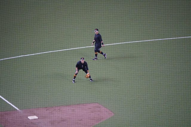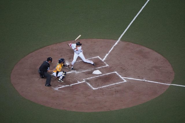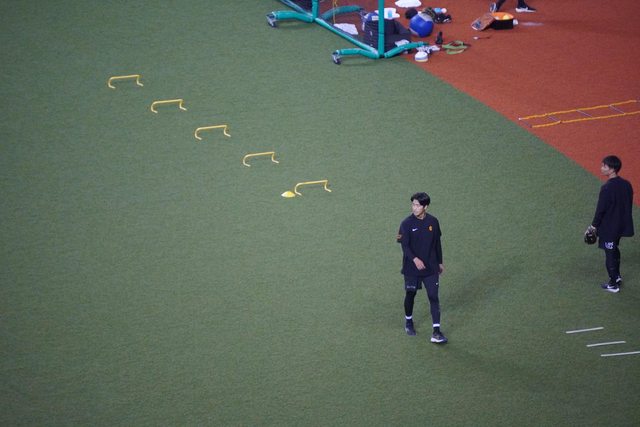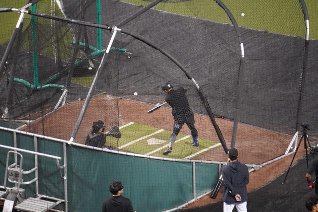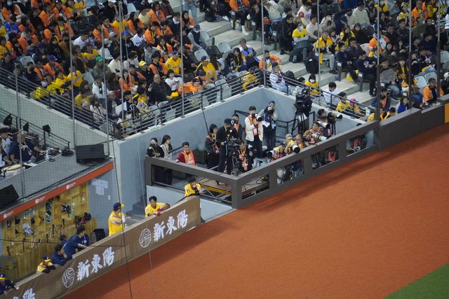 在手扶梯出來的位置,個人是覺得比B1好,沒柱子 繼續往2F右外野方向走走 順便看看打擊練習,但因沒有明顯的號碼,不知道是誰在打 1壘側