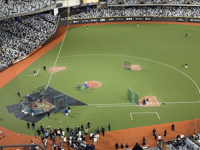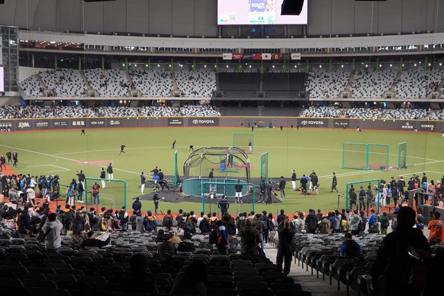 本次買1壘側5F蛋頂中後段座位(504區6排) 前次亞錦賽買在3壘側B1中後段(117區26排) 不看那些大小問題的話(?),大巨蛋其實挺不錯的 這次主要來看岡本和坂本 大約兩點半入場,趁賽前晃晃以及觀看練習 從B1內野入場 #B1 本後視野