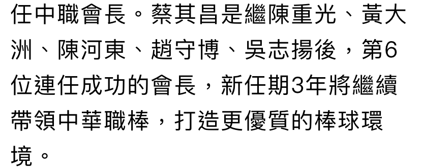 推 CHRush: 恭喜連任也希望會長繼續爭取預算 讓中職更好 03/06 16:11