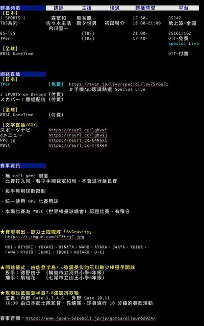 標題[LIVE] 12強熱身賽 歐洲 v 日本 Game1