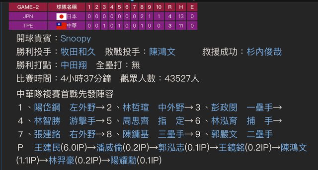 推 www115ui8: 太早把林泓育換下去是敗筆 03/08 11:59