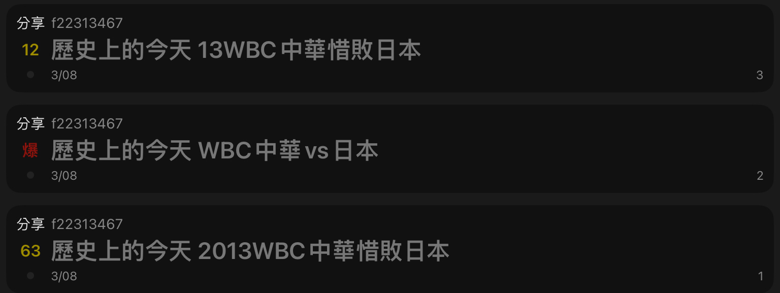→ n613011: 靠13WBC復甦臺灣棒球 03/08 11:43