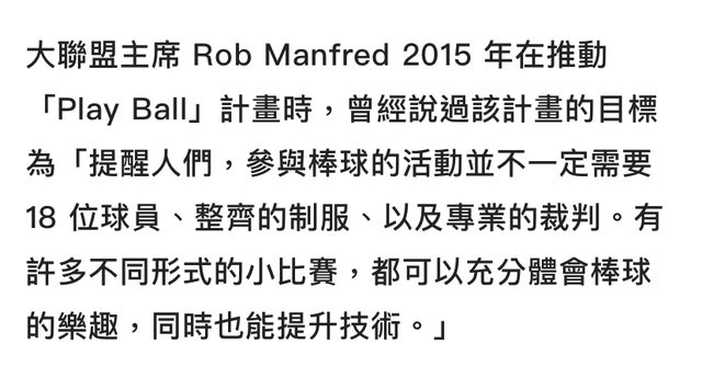 → tfe: 打社區棒球目的不是要打職棒 是培養運動的興趣 還有運動家精 03/13 09:46