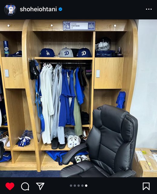 大谷的置物櫃個人物品已經都到位了!