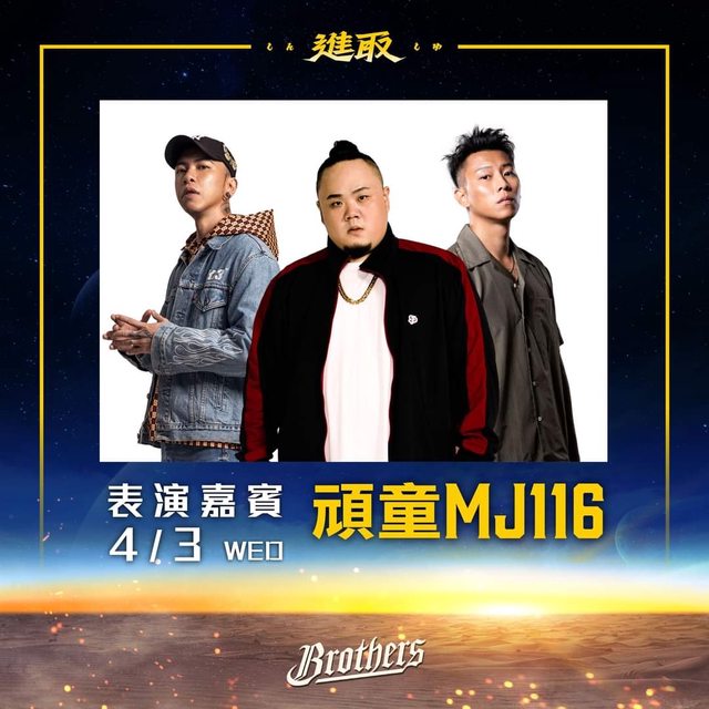 嘻哈天團「 頑童MJ116 」將在中信兄弟台北大巨蛋主場首戰4/3(三)賽後熱烈開唱