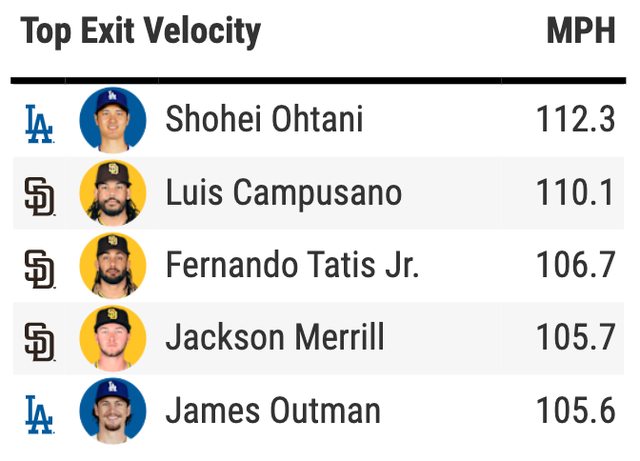 擊球初速也是本場最快的 112.3 MPH