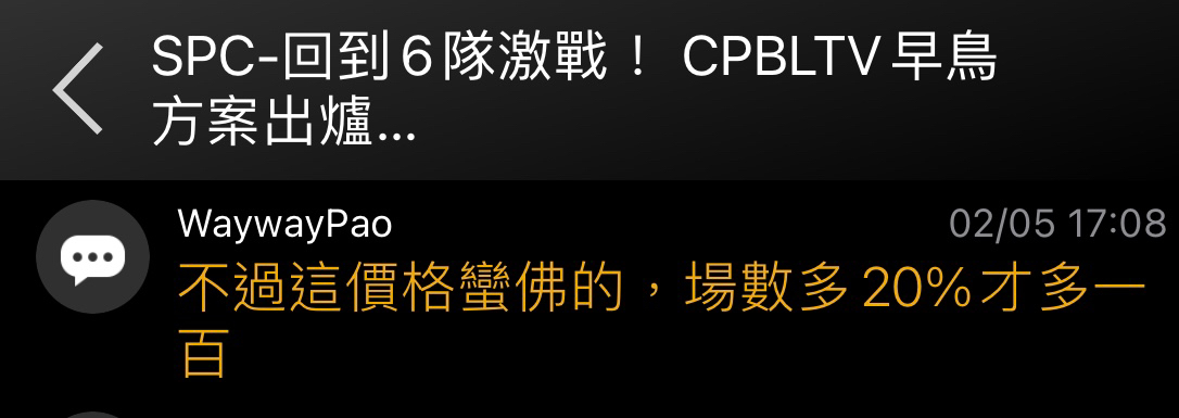 推 MrSummer: 買了CPBL TV求退費QQ 03/26 20:36