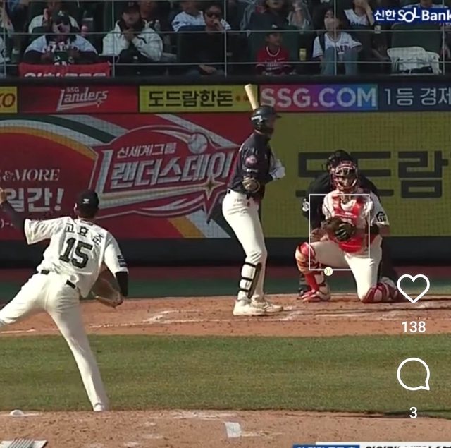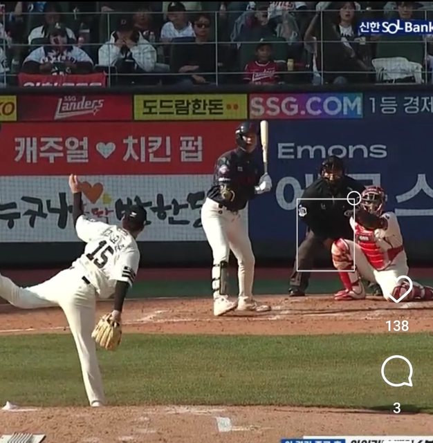 SSG登陸者的投手高孝準在兩好球後連續投出了角度刁鑽的球路