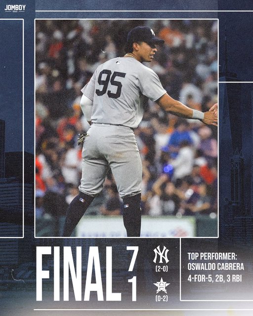 終場洋基7:1擊敗太空人拿下二連勝