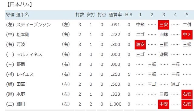 先三振水野,下一棒細川纏鬥八球敲安接著輪到一棒洋將スティーブンソン觸擊短打
