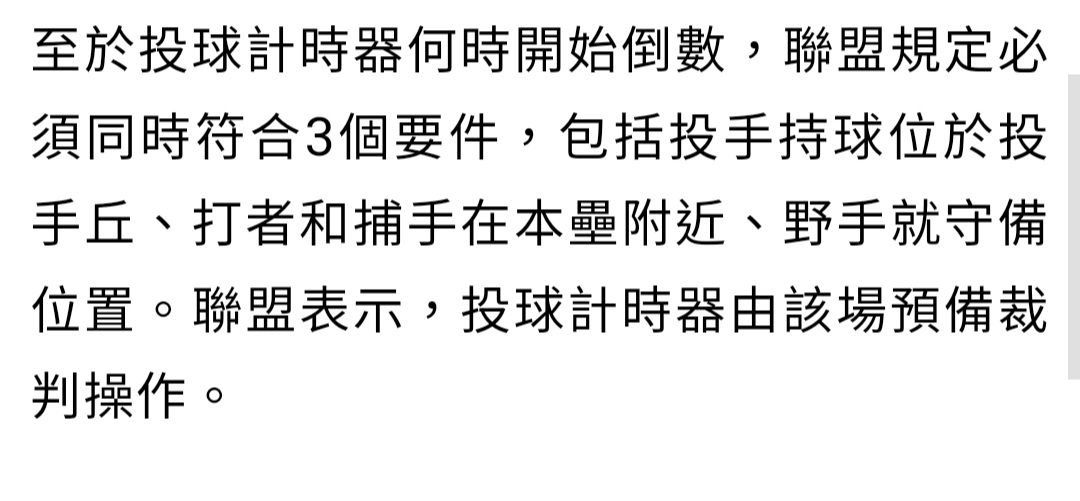 → Cohlint: 就抄一半的結果,MLB是捕手回傳投手接到球就開始計時, 03/31 20:36