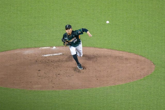 比賽開始!曾子祐吞下了台鋼隊史的第一次被三振...