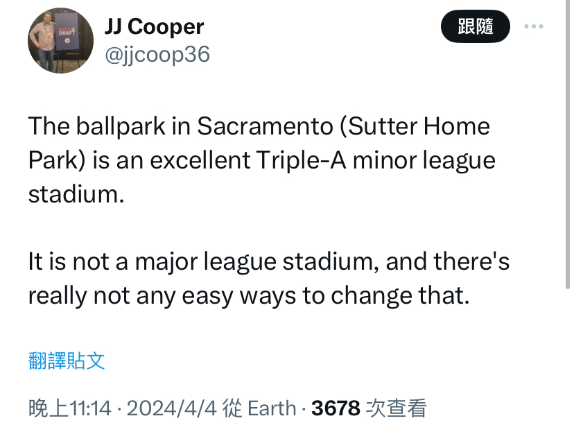 → hank13241: 球場資金,對比奧克蘭真的高下立判 04/04 23:28