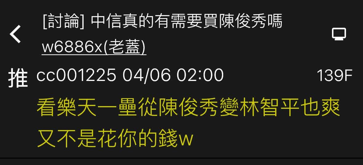 推 freenow: 今天有人在檢討吱吱放掉一些好人,所以牛棚沒人,然後賽 04/06 21:15