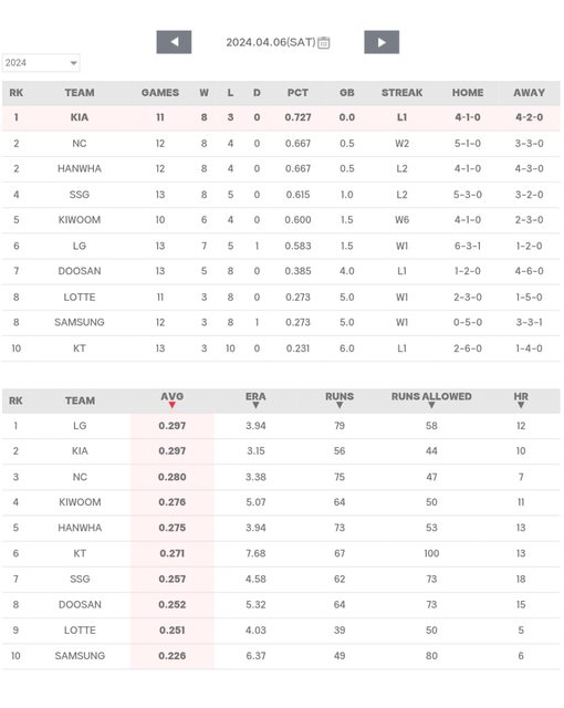 4 . 金泰君(KIA)連續打席全壘打,本季3,聯盟1173,個人1。