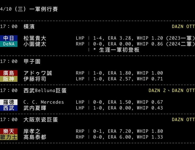 4/10(三)一軍例行賽