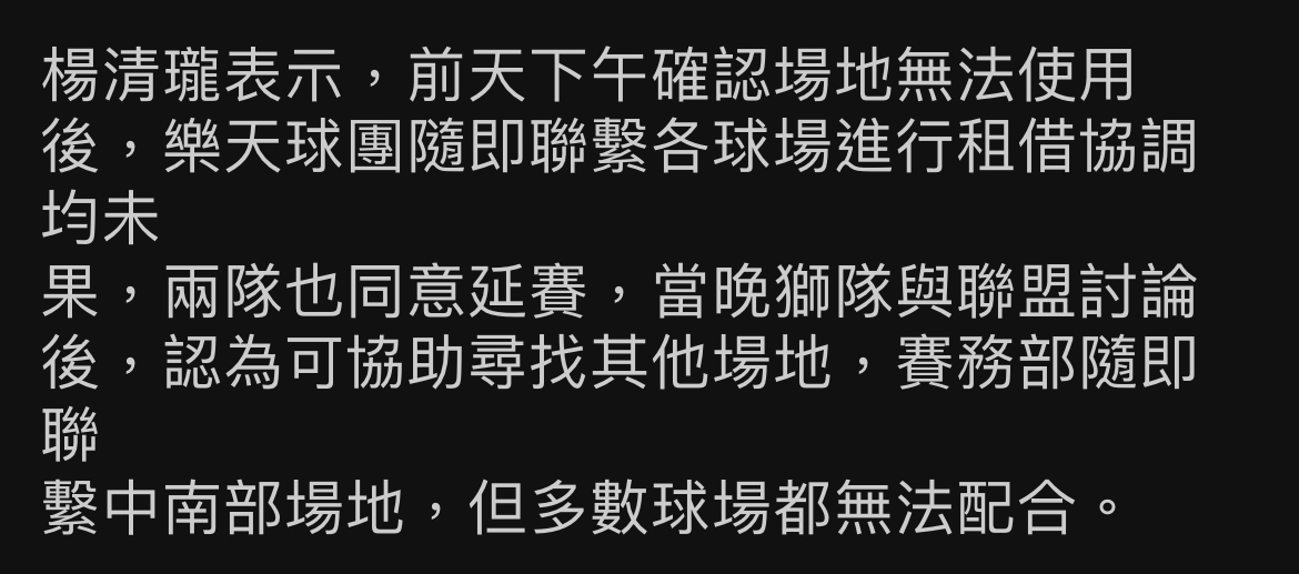 推 liusim: 在場地未確認前就該預好備案了 這球團真的有夠亂七八糟 04/10 12:53