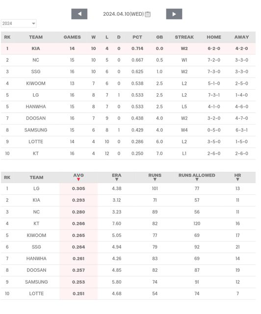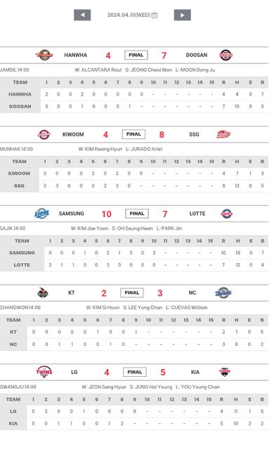 標題[數據] 韓職4/10結果(金廣鉉161勝 具滋昱6安打)