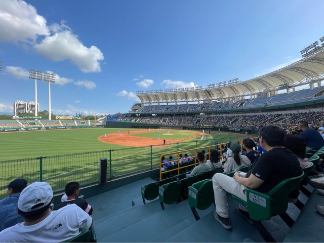 這次坐在客場靠邊的鐵椅席,視野也蠻讚