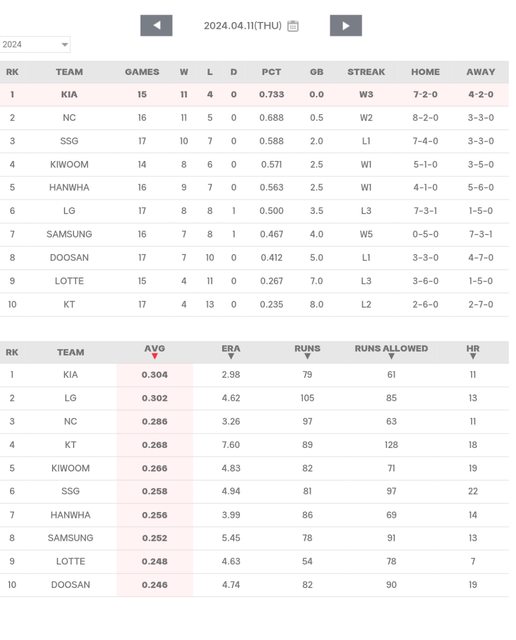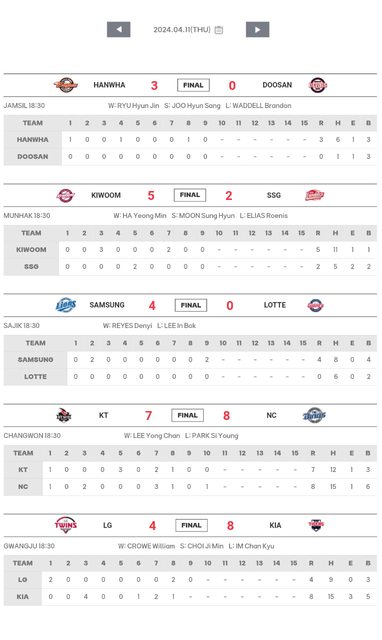 標題[數據] 韓職4/11結果(柳賢振回歸KBO首勝)