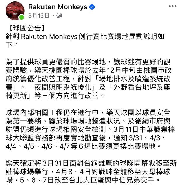 → damen0808: 球場問題不就早推給市府或聯盟了嗎,他們是”盡力配合 04/13 08:53