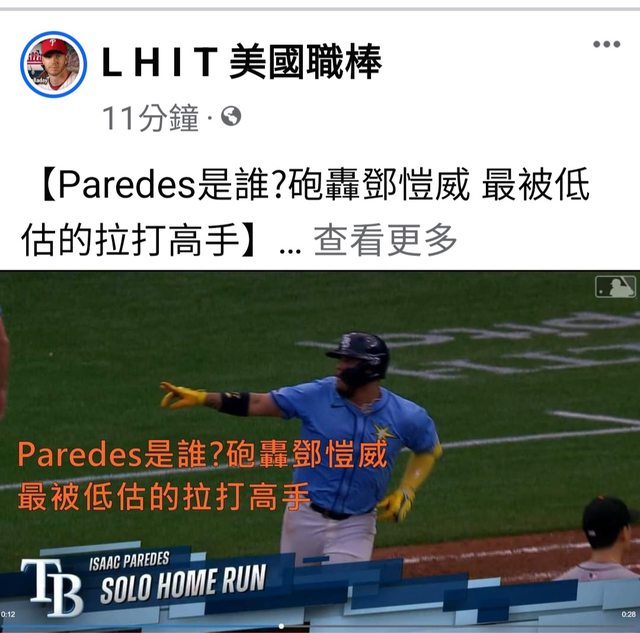 且Paredes 看似沒很強勁的拉打飛球