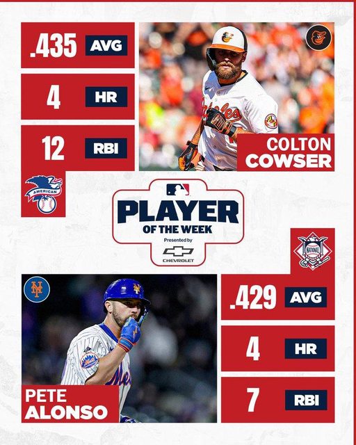 標題[分享] Colton Cowser, Alonso 獲選單週最佳球員