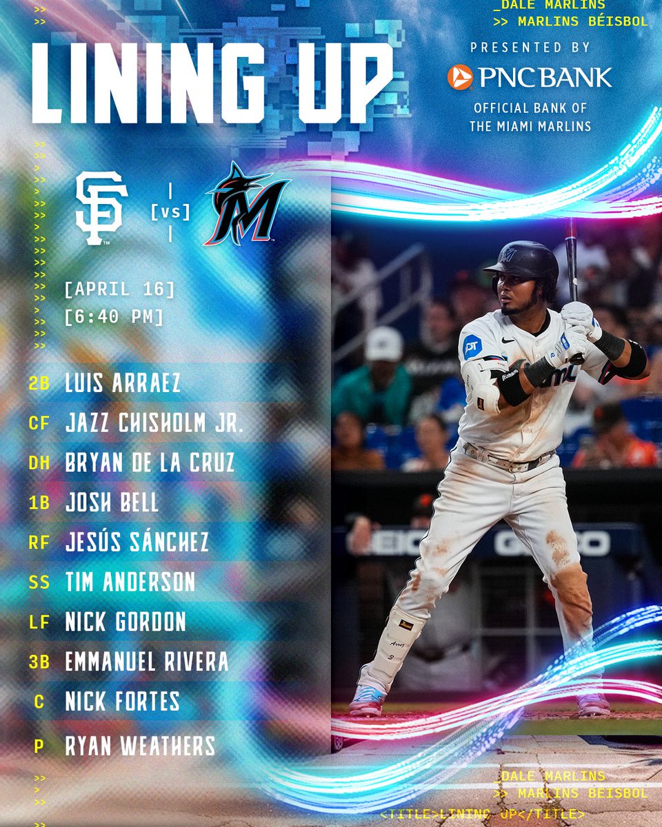 1B Wilmer Flores CF Jazz Chisholm Jr.