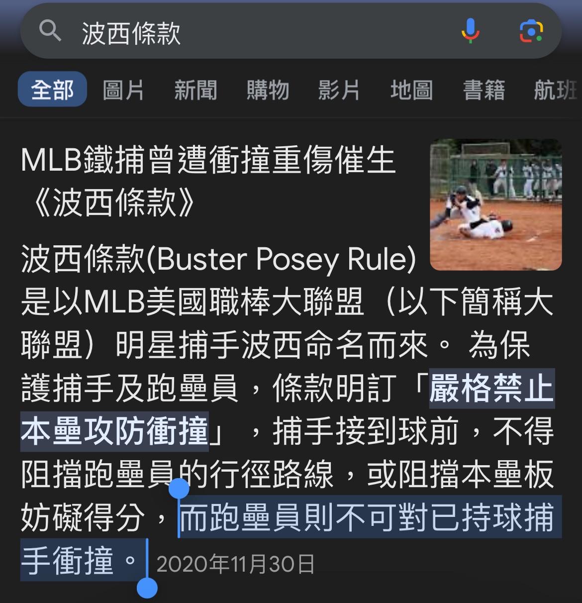 推 s70160: 要是被判擋本壘….那不就違背前幾年說 球先到 可以檔的解 04/20 10:48
