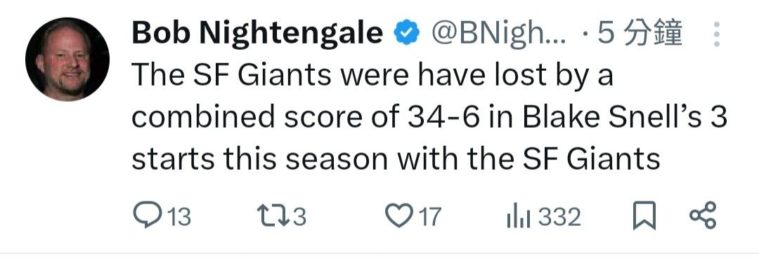→ Sechslee: 除了兩次賽揚年以外就是平均水準 今年大概要平均以下了 04/20 13:23