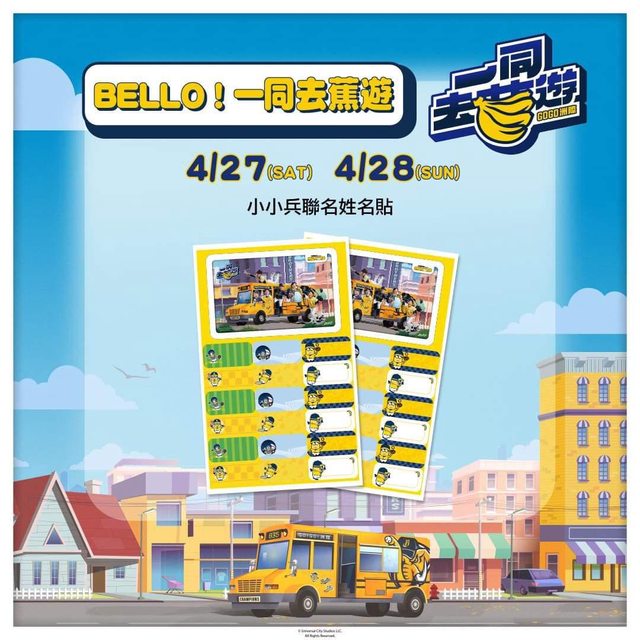 4/27(六)-4/28(日)「BELLO!一同去蕉遊x GOGO洲際」X 小小兵聯名姓名貼