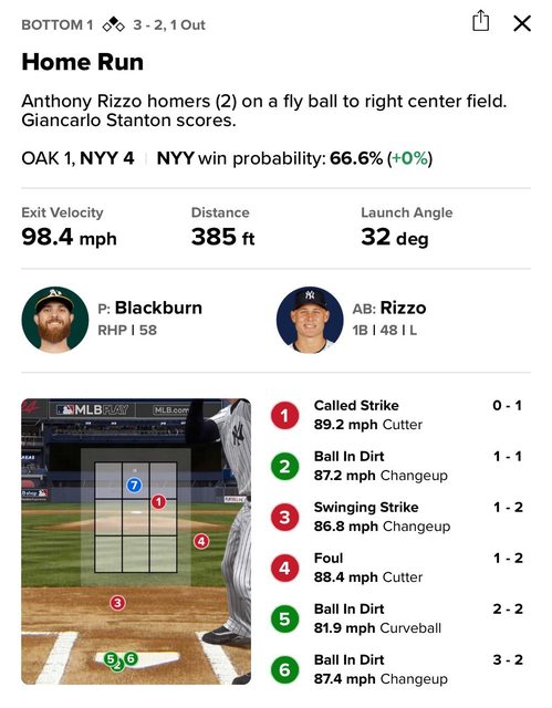 下一棒Anthony Rizzo 敲出兩分砲幫助洋基4:1領先