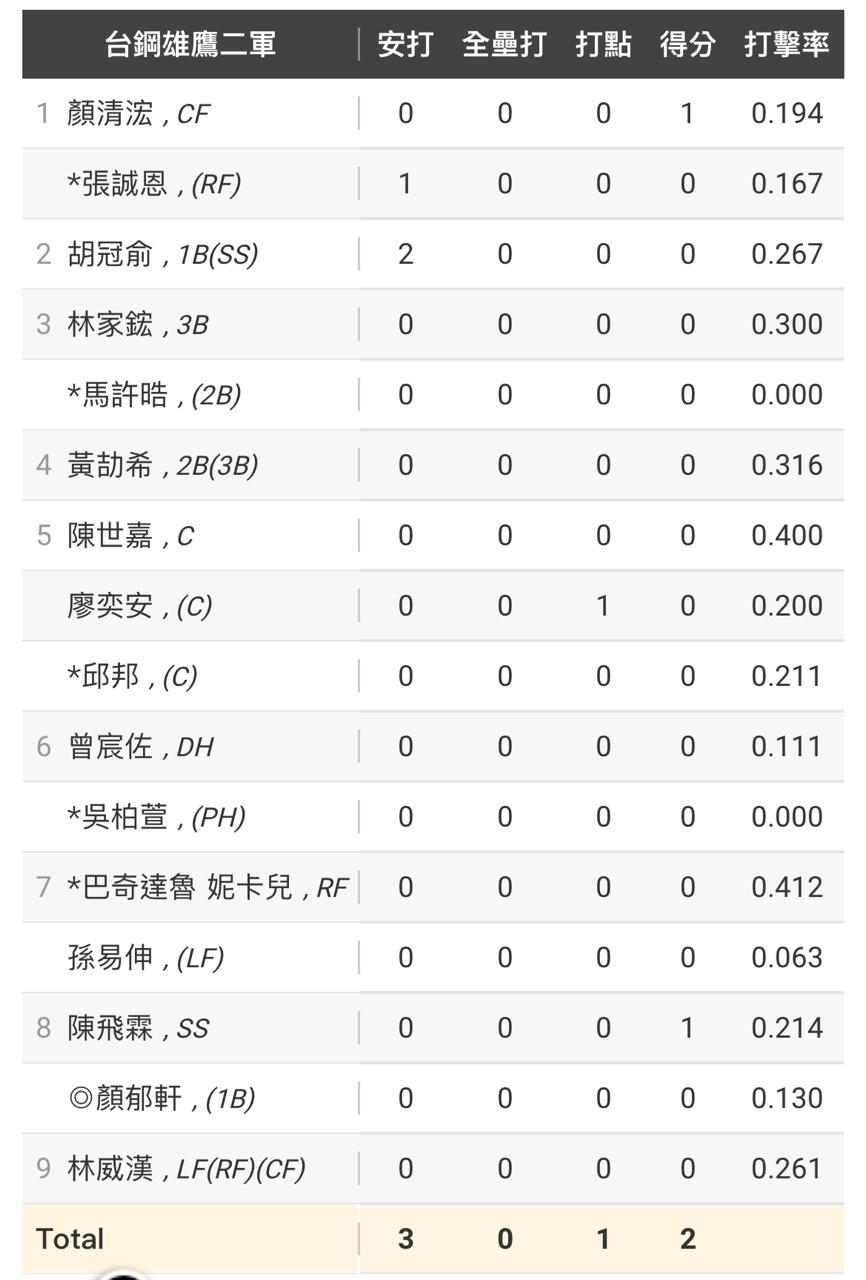 → teddy1209: 好奇台鋼其他人成績 04/28 18:12