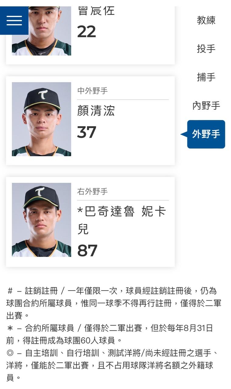 推 NowQmmmmmmmm: 巴奇不可能拉啦只能在二軍出賽,有星號的都只能打二 04/28 19:19
