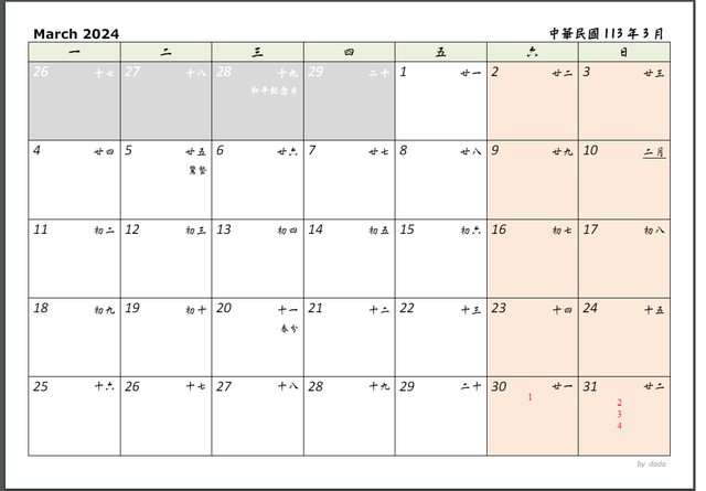 全文恕刪, 用簡易月曆先排上半季的賽程, 只標場次而已