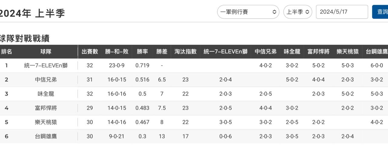 推 nsk: 上半季大勢抵定 卡住大老二 退可取外卡 進可拿下半季冠軍 05/17 22:06