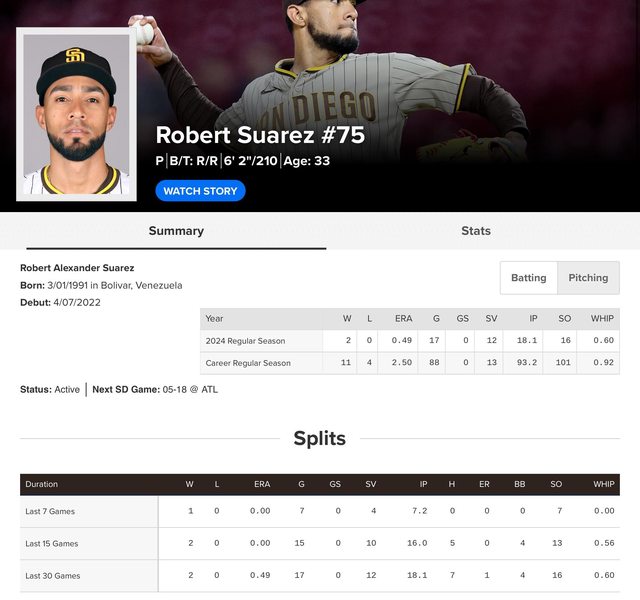 Robert Suarez三月掉1分以後再也沒掉過分數