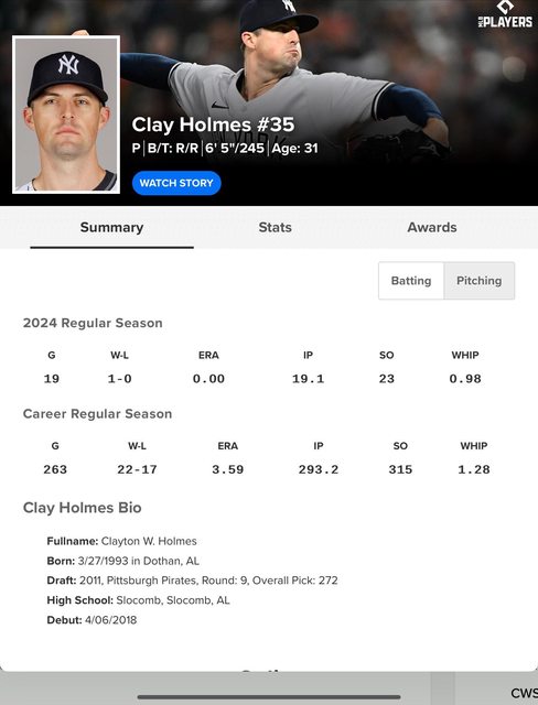 標題[分享] 今日Clay Holmes 連續19場未失分