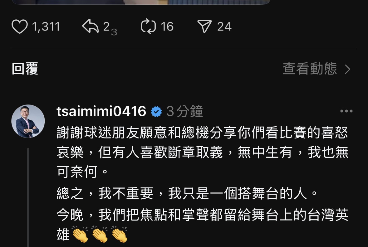 推 finalstar: 會長引用球迷的話,立意良善,不需道歉 11/24 16:02