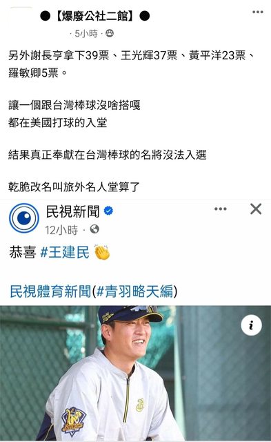 推 theropod: 不如分台灣名人堂跟中職名人堂 01/13 12:26