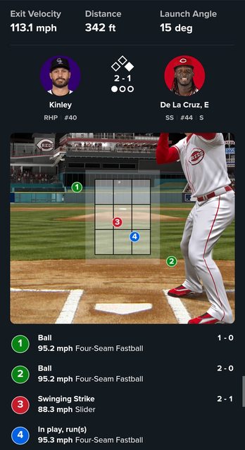 四局下De La Cruz作為首名打者上場,