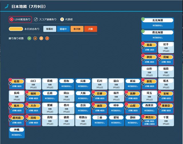 另外首頁的日本地圖可以看到那些縣市的比賽有轉播,或者只有分數轉播