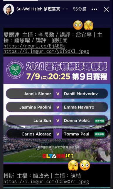 只是幫忙整理溫網的台灣轉播表,沒想到居然也會讓淑薇驚訝
