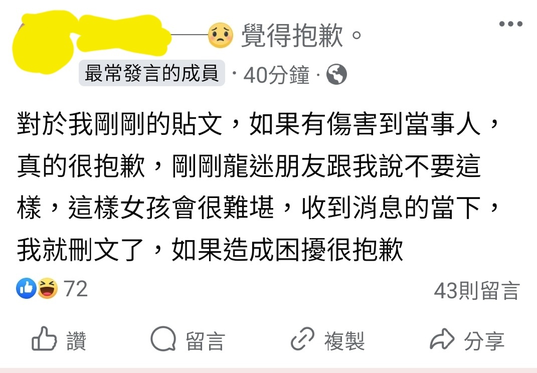 推 alvis000: 社團特地po一篇臭結果沒想到搞到刪文道歉 07/15 17:53