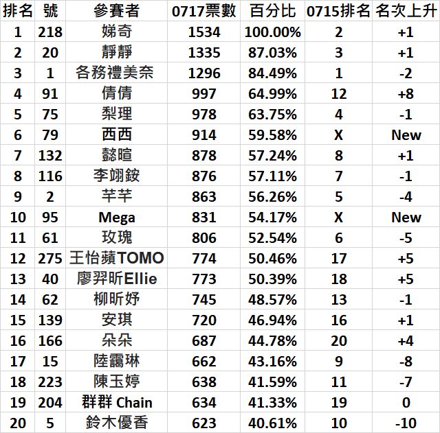 標題[閒聊] 味全龍啦啦隊甄選 票數和排名