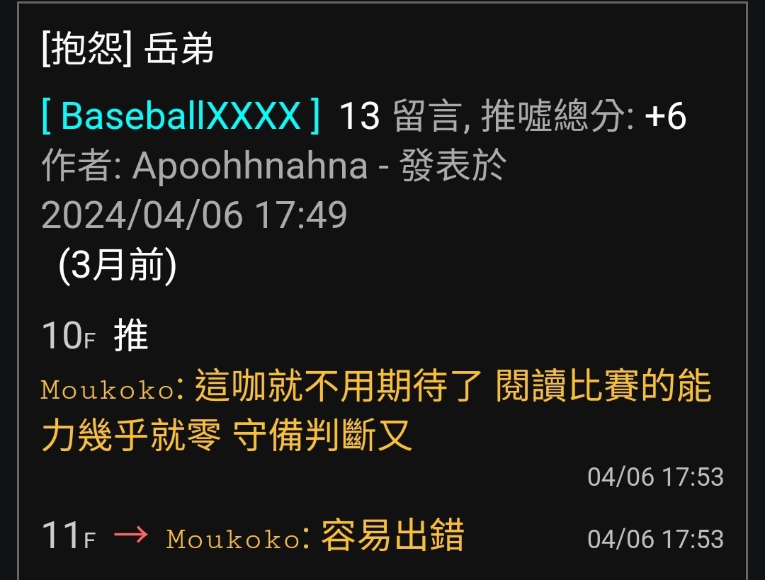 → andy82116: 你看這篇扯東扯西 扯揮棒 扯其他人 就是不承認自己造 07/18 12:54