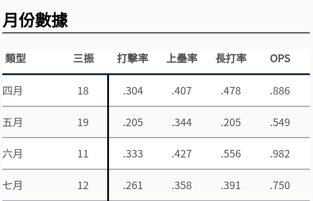 → ChenTzuHao: 七月 53PA OPS+96.8 07/19 17:52