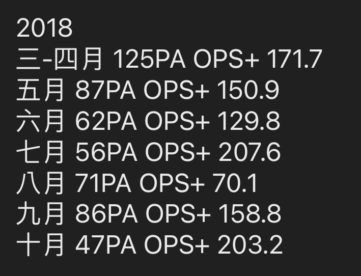 → ChenTzuHao: 四月 81PA OPS+ 153.5 07/19 17:52