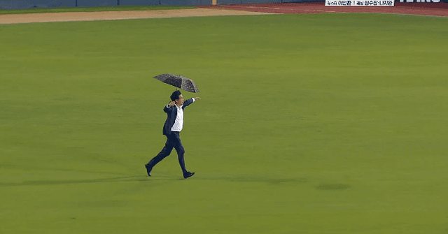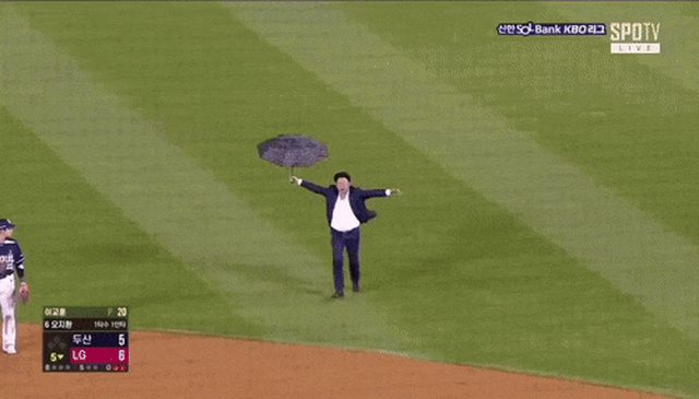 LG相關人士表示:“這名觀眾表示,他的雨傘掉在地上了,他跳進場撿起來。