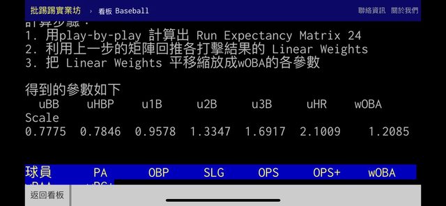 推 ohnacl: 很接近,wOBA是用得分期望值算,以這個角度看 07/20 02:11